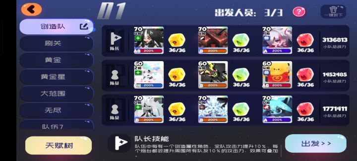 推荐个配队。自从十字汪加强过后,队长技最高加成60%的常驻全队加攻。已经符合需求了。本期配队,不仅仅日常打12之间,基本上没有任何缺点。日常的所有副本均可以自动通过。所有关卡没有一关可以阻挡创造队。如果boss护甲较高,其实也可以依靠高生存和高伤害硬打。因为其极高的生存能力,完全可以解放双手直接自动。因为十字旺的输出频率很高,像本期的攻击次数护盾,完全可以无视。又因为队伍全属性为创造,所以也