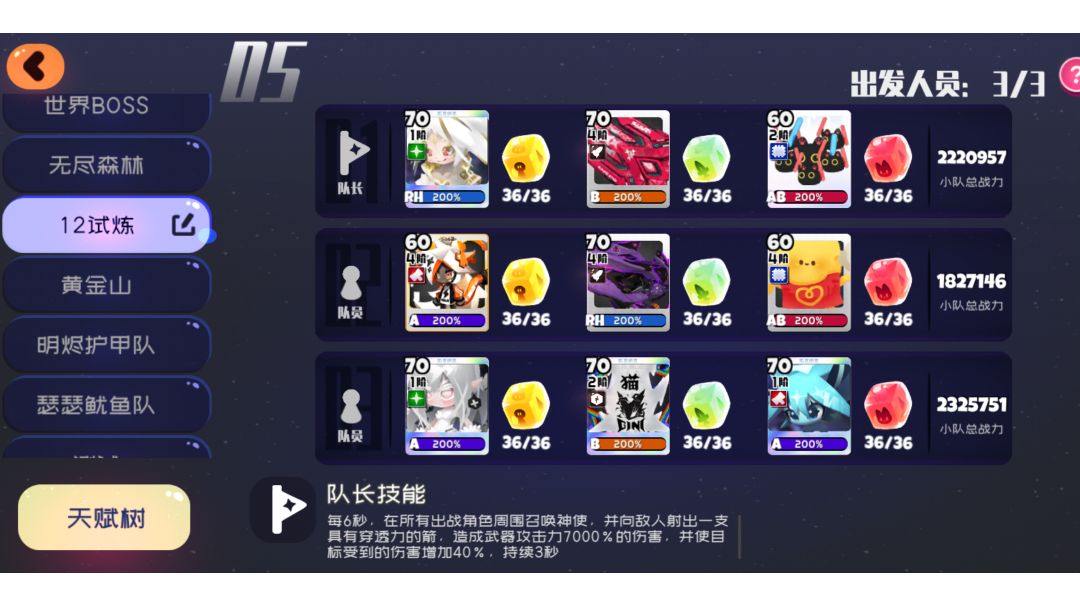12之间万能阵容,没有什么太多注意的点,围绕着召唤物拉扯,普通关卡可以直接开技能原地摁着开火键打,精英怪需要操作利用召唤物吸引仇恨拉扯。这套阵容不需要太高的练度,栗君和蜘蛛0阶也可以过。宠物,我的猫剑也是二阶没怎么洗。 具体阵容视频最后面有公布。 七星宠物方面最优解还是剑圣,大招cd短有吸引可以聚怪。没有的任意输出七星即可,也可以换成云增加精英关的存活率。打BOSS阶段必备三次复活以免翻车,不是为了任务,奖励关,防守可以不拿对通关没有太大作用,路过可以拿一下奖励关。不要去特意为了奖励关浪费时间。路线走错可以直接退出重进会返回当前击破房间节省时间。 菜园方面破甲需要很高,天赋方面也是主拿破甲和普通天赋,普通天赋不需要佩戴直接可以生效,小天赋带什么都可以加成意义不大,大天赋主动根据习惯来就好了。
