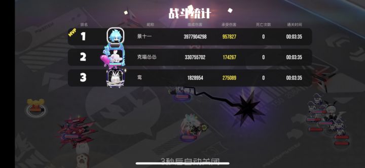 晚上打的时候发现比较好用的阵容。跑来分享一下。无限明烬+芒果冰大腰子+猫剑晚冬+水晶刺这个队打了两次都赢了。两分钟左右。抽到个大剑装扮。