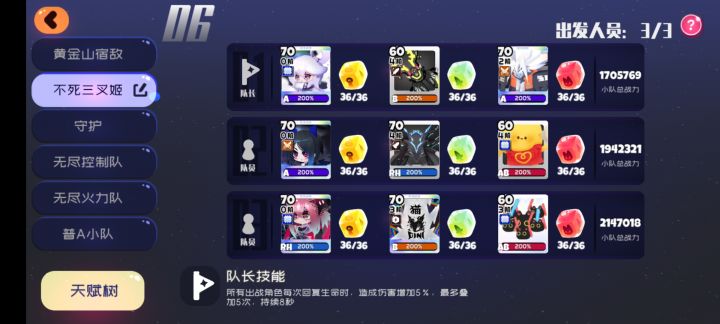 推荐一个目前很多人在用的一套无复活阵容吧,主要思路还是三叉姬主力输出,朵朵,打call,提升三叉姬的输出上限,保证角色存活率,如果你还担心存活问题的话也可以下掉鸡块,上个蛋挞。天赋树带同阵容增伤,爆率,配合键盘词条,方糖能达到一个满爆率的情况。大妖炽则是在破甲的同时还可以搭配只因和猫剑达到一个快速清注的效果,带上剪刀和鸡块则是尽可能提升这套阵容的输出上限,方糖的话我这边是朵朵技强,三叉姬技强,大妖炽冷却,当然了,这套阵容的伤害区间也是满大的,主要取决于鸡块的存活,但也能保证在120e以上了,如果你练度再高些应该是能保证把把150e起步了。(主要还是建立在三叉姬词缀,满菜园的情况下),我练度比较低,人物没升过阶,但对于满菜园来说应该是够用了。