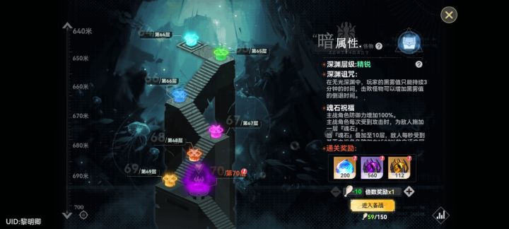 新手玩家打完主线十层刚开始进入深渊比较需要注意的一点,就是属性克制。深渊的属性克制由原来的50%提升到了75%,每层一种属性,前期你的伤害高可以暂时无视属性,但层数高了就会发现必须要打属性克制。伤害够高可以武器不用带属性克制的,衣服最好要换属性克制的,不然容易抗不住。(暗关特殊另外说)建议刚开始打深渊的时候,衣服可以每层换一件克制属性的,穿50橙装或者45红装都行,武器衣服尽量每种属性留一件