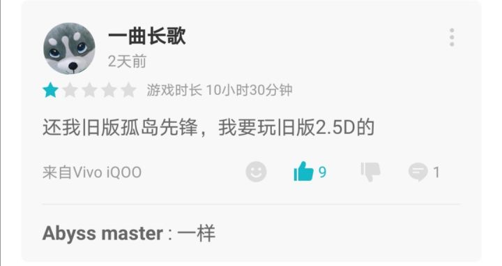 老版孤岛先锋还会回来嘛?官方没有发现每隔几天就会有人说怀念旧版孤岛先锋嘛?没有要重新开服的意思嘛?很难是嘛,老孤岛的版号文网文号都给新孤岛了,所以原版老孤岛要开服几乎不可能。我们的意思是玩到原版老孤岛先锋,新孤岛可以继续存在,没有要新孤岛关服的意思。(状态持续了7个月,自打2019年9月12日中午12:00关服以后天天基本上都有人念叨老孤岛先锋,而且支持人数占多数,以各种理由存在,有的说怀念的,有
