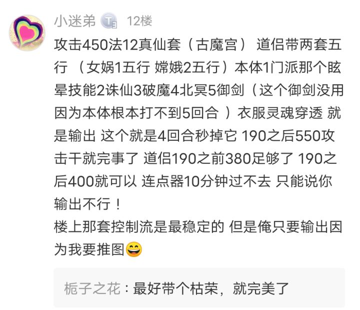 各位论坛的大佬们,我是青色玉简的一梦灬轮回,是一条在我们区足够咸的老咸鱼。(狗头保命)前情提要:本文方法理论上适用各阶段大佬,但目前可能较适用于各区前十大佬。根据控制能力不同推过不同的楼层,但因前面数据缺失,没办法提供,所以说声抱歉。那么,开始正文!在不久前,因三五行推万仙太黑在187卡住推不上去,便想出了本文的方法,本文写的比较详细,请大家耐心观看~(没耐心的大佬可以直接看后半部分的讲解)本