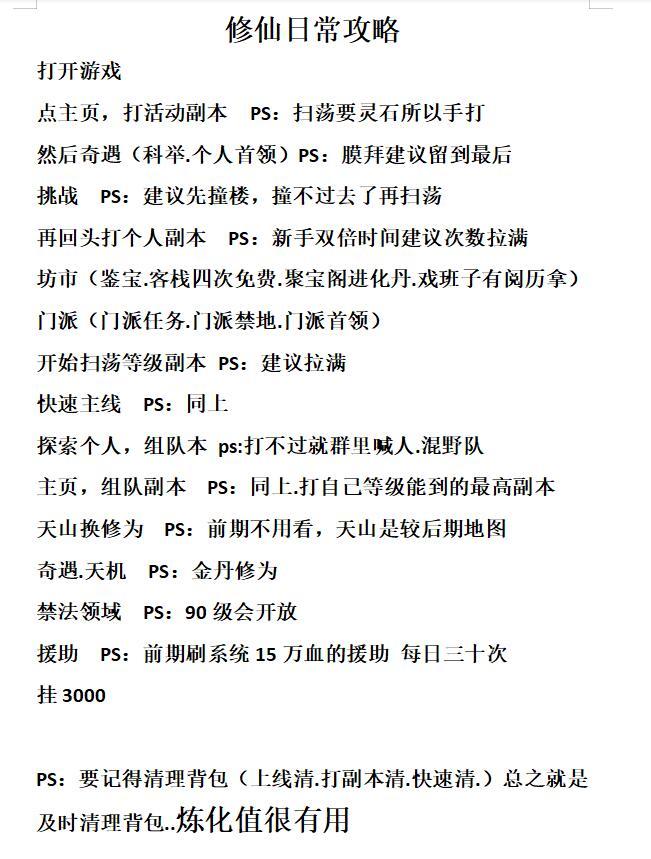 仙侠新手每日基本攻略