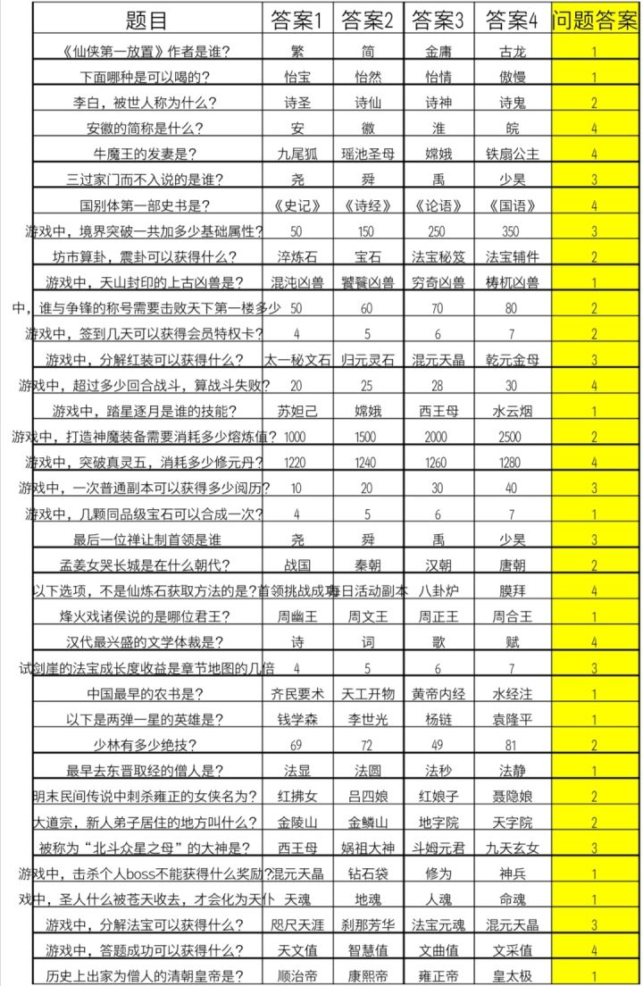 新科状元 科举答案 仙侠第一放置