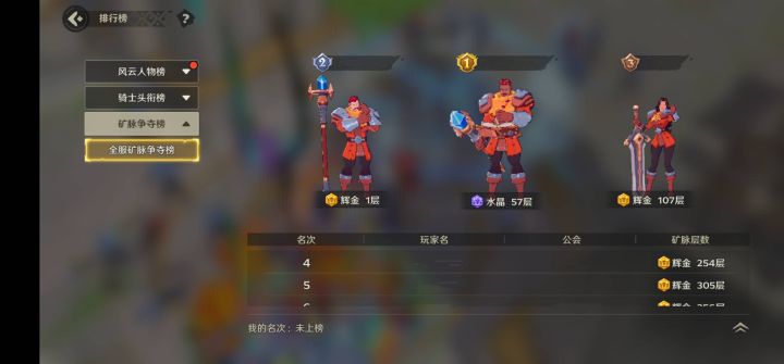 在「创世黎明」测试期间参与矿脉争夺,不断进攻更高层数!最终将根据1月30日24:00的全服矿脉争夺榜,前100的骑士将获得「无主王座」周边产品和京东卡奖励!矿脉争夺玩法介绍玩家达到12级时,会开启矿脉争夺玩法,每名玩家拥有一座专属的矿脉。通过主动挑战,可以提升自己所在矿脉的层数。挑战的对手层数越高,自身提升层数越快,从而获得的奖励也越丰厚。参与矿脉争夺玩法可以获得大量的金币与星辰精粹,我们期待