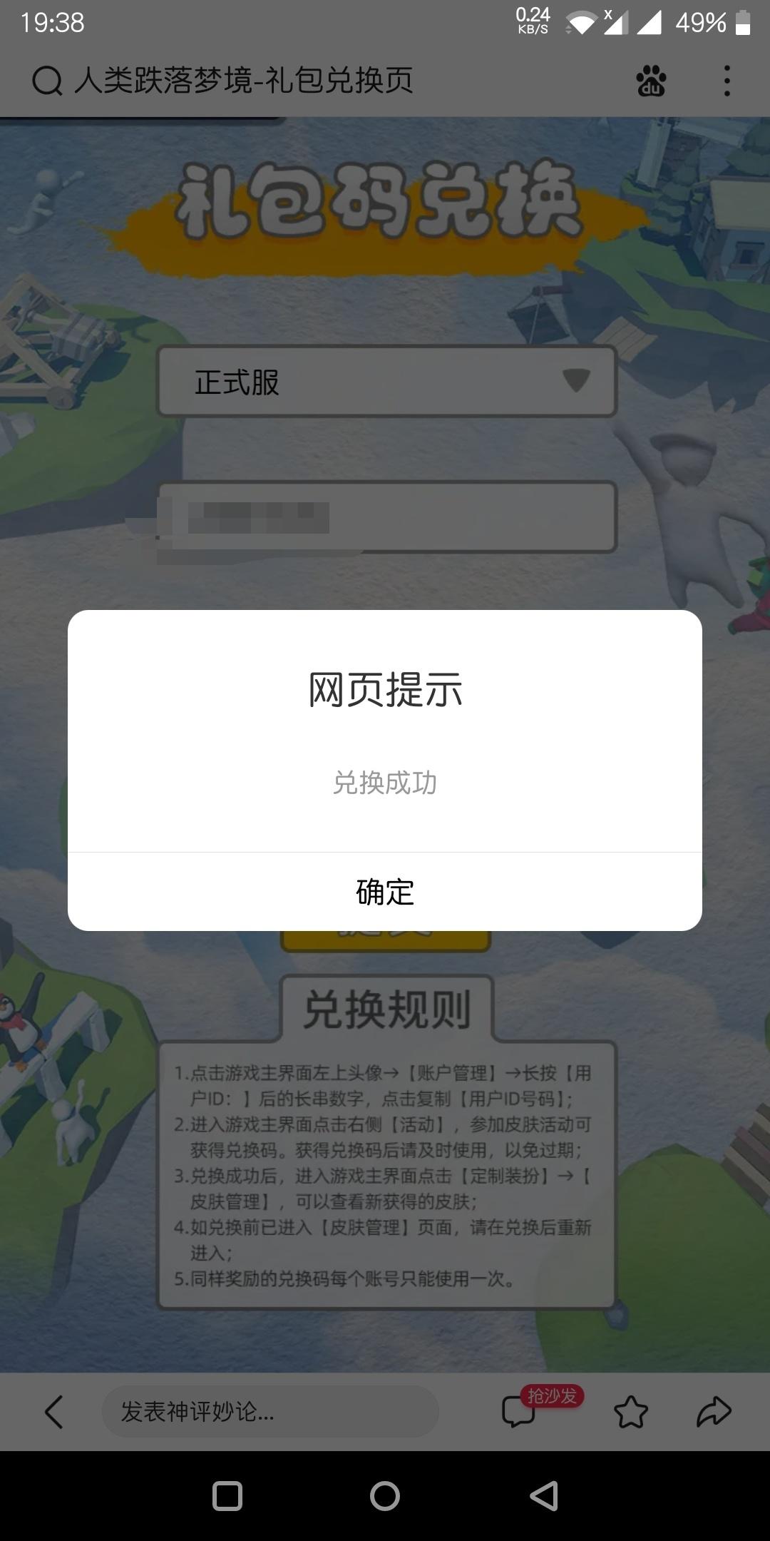 有工作人员解决一哈子不……兑换码给了 网页兑换成功了 游戏里收不到皮肤……😐😐😐