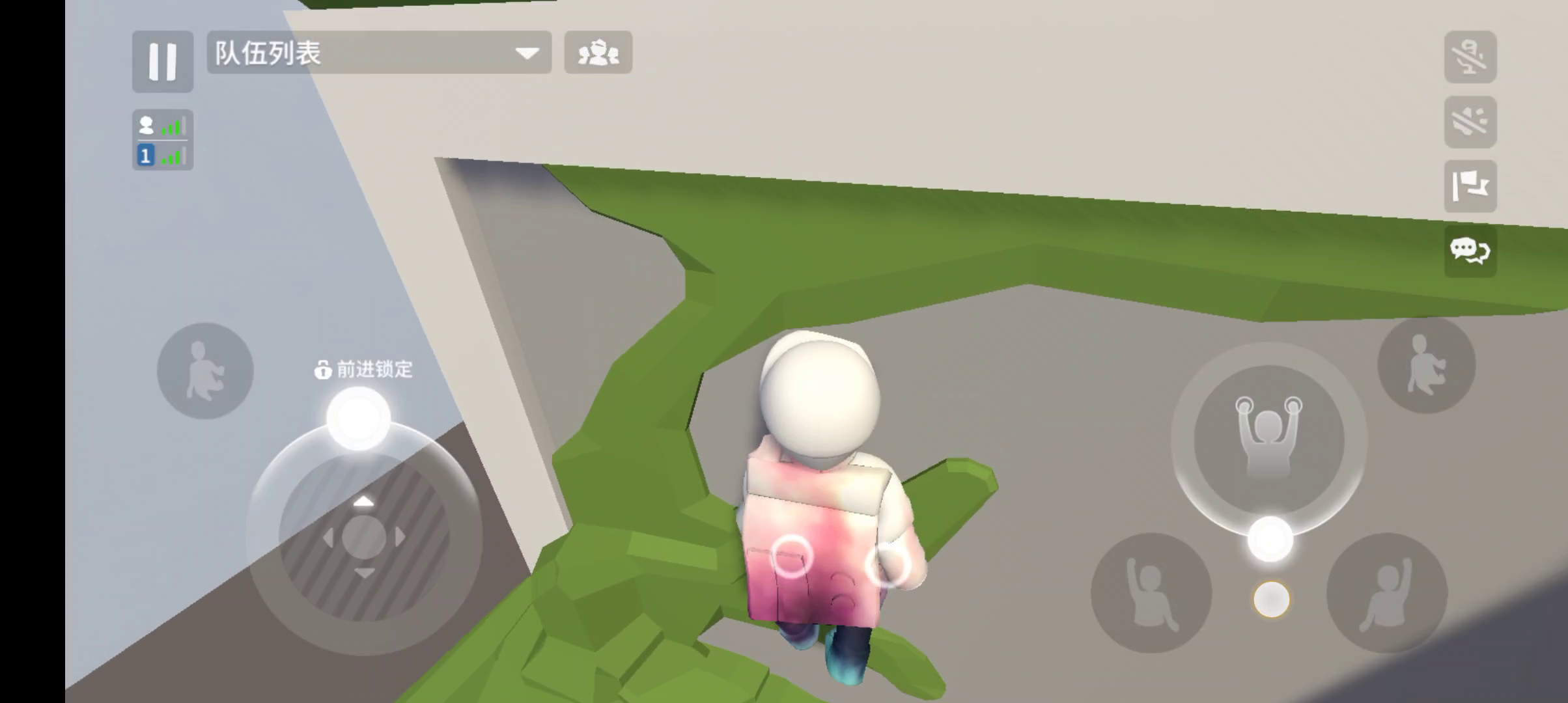 看我后面的操作,貌似没问题,就是视角拉不上去就爬不了...屏幕左侧不能控制视角,右手的位置已经操控爬墙了,却偏偏这个位置还要控制视角,这。.....