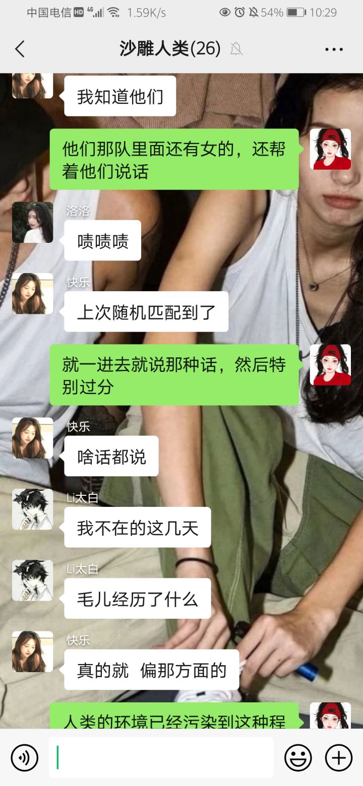 相信大家都进过一些一进去就说一些脏话污话的人,我今天就遇到了,还叫了我的小伙伴能给我帮忙,我真的搞不懂某些女性朋友竟然还帮着他们说话,难道你不是女孩子吗?这样侮辱人,你不觉得你。。。。良心过不去吗?