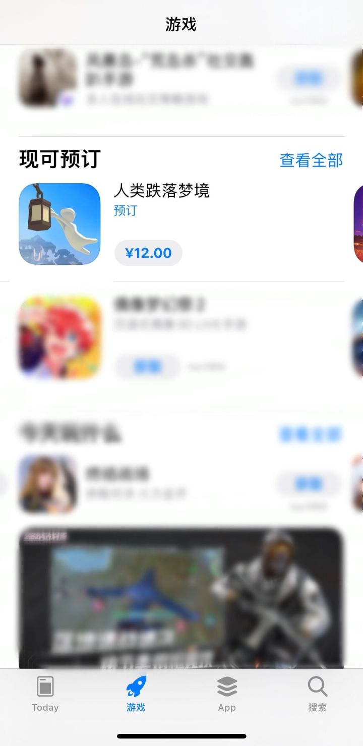 玩家老爷们!《人类跌落梦境》已经在App Store开启预订啦 !iOS用户可以前往App Store游戏页面,下滑至“现可预订”专区进行预订,也可直接搜索“人类跌落梦境”进行预订!预订后,游戏将在正式发售时自动下载到你的手机上,让你成为第一批沙雕人类('ω')