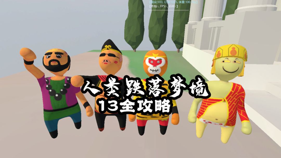 人类一败涂地又名 人类跌落梦境 这关的全攻略 因为这个游戏包含了很多的过关方法 所以 这攻略并不是唯一的方法 再多人联机的时候可以做到很诡异的操作 甚至不需要任何攻略 只需要大家伙足够的团结和不要脸就可以过关....