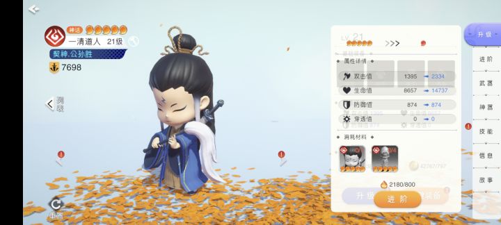 BUG,升级时候,弹出进阶页面,但是下边的升级还能点。而且闪退越来越多了,基本上一分钟闪退一次,游戏挺好玩,但是闪退快给我劝退了