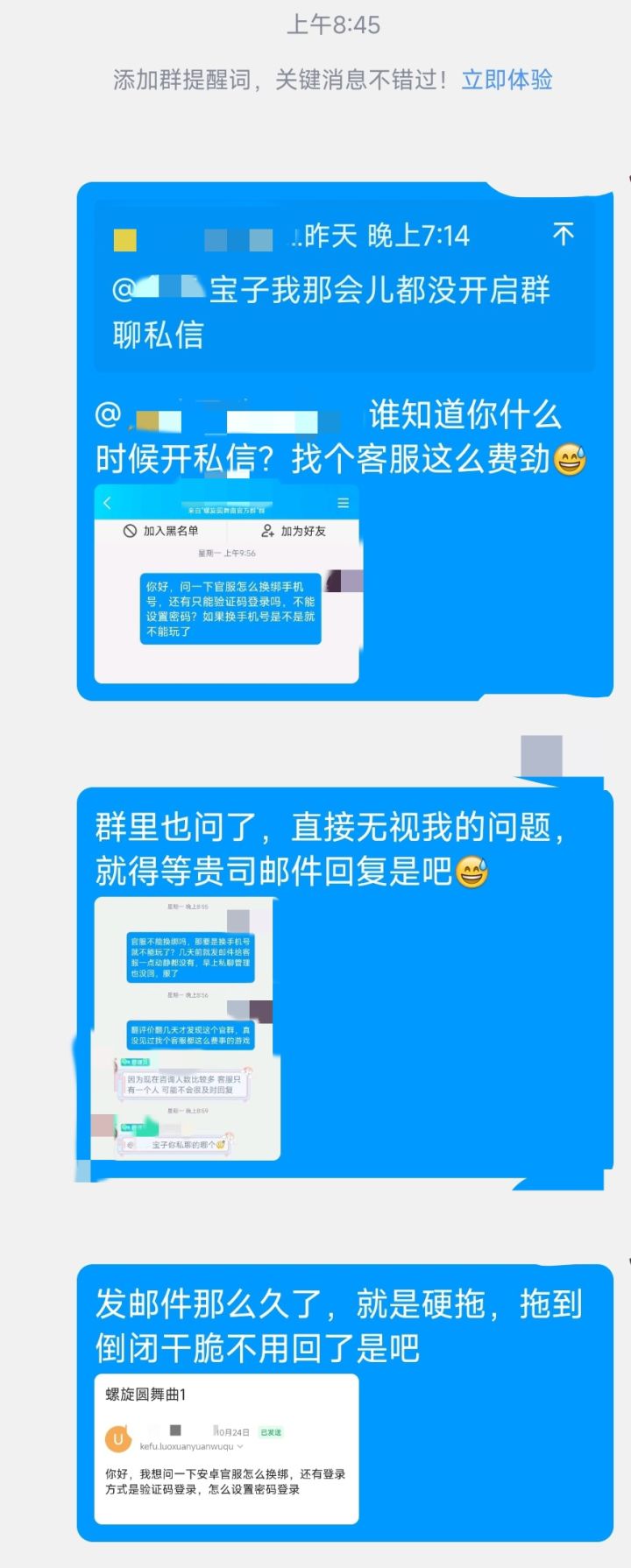 反馈问题只有邮件方式一个渠道,官方群就是个摆设啥用都没有,不知道直说就是,扯些没用的废话,还乱扣帽子