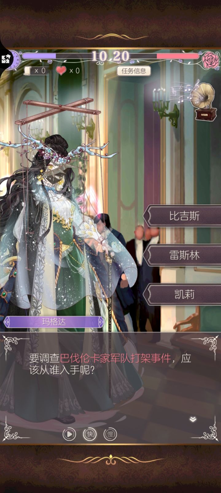 *根据后续剧情随时修正错误解读*4.1-3 乔卡瑟尔结交雷约克?!狮心和奥利奴结盟顺利(虽然被尤文挑拨了一下关系),于是佐伊老狐狸承诺支持埃伦斯坦家族重回席位(任务完成2/4)。为了尽快拿下剩下两家的支持,玛格达开始针对性刷蒂拉和冈萨洛的好感度。大家对冈萨洛的印象都是爱比美的男性npc吧,喜欢阿伦,喜欢漂亮华丽的东西。但他看似纨绔,实际做事另含深意。玛格达能撞见蒂拉会面雷约克派来的外交使者