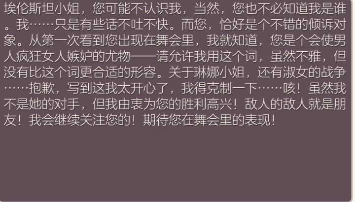 说实话,当时知道她也是“埃伦斯坦”的时候我就隐约感觉不对劲,她的介绍是漂亮又有能力的样子,妈妈对她的感觉也很好,我有点担心她的目的。