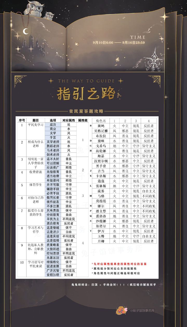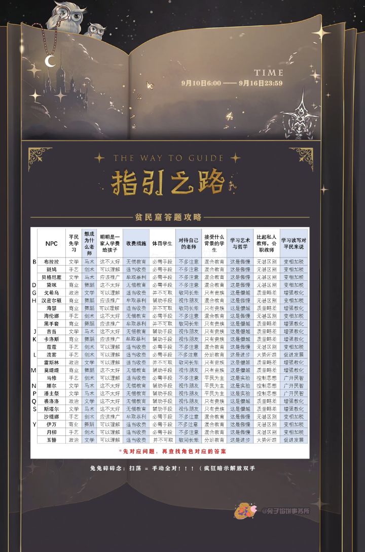 平民学习 地 政治 水 商业火 手艺风 文学体罚学生(A类问题)善良 并不可取中立辅助手段混乱 必须手段对待自己教师(A类问题)善良 敬同长辈中立 视作朋友混乱 不多注意学费借给孩子(B类问题)善良 这不太好中立 可以理解混乱 应该推广