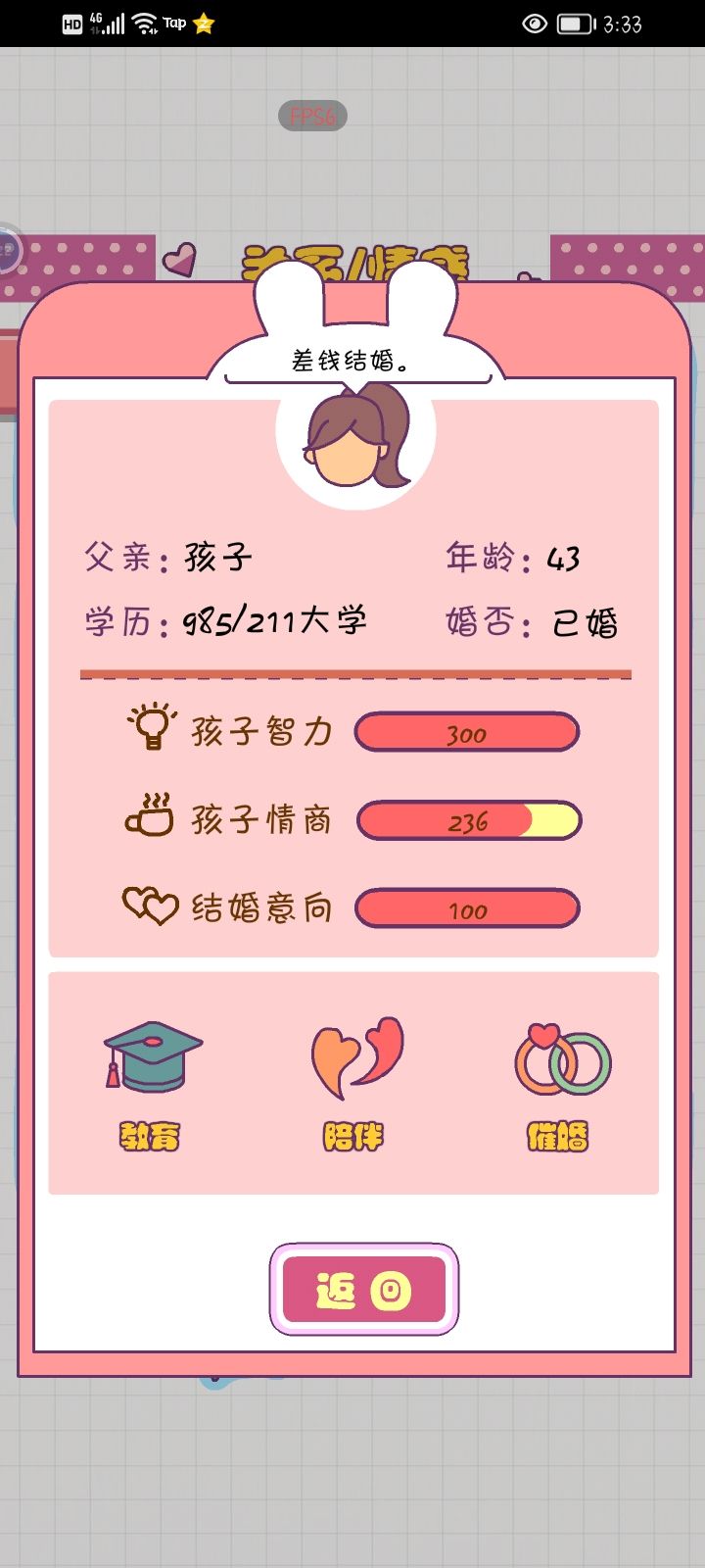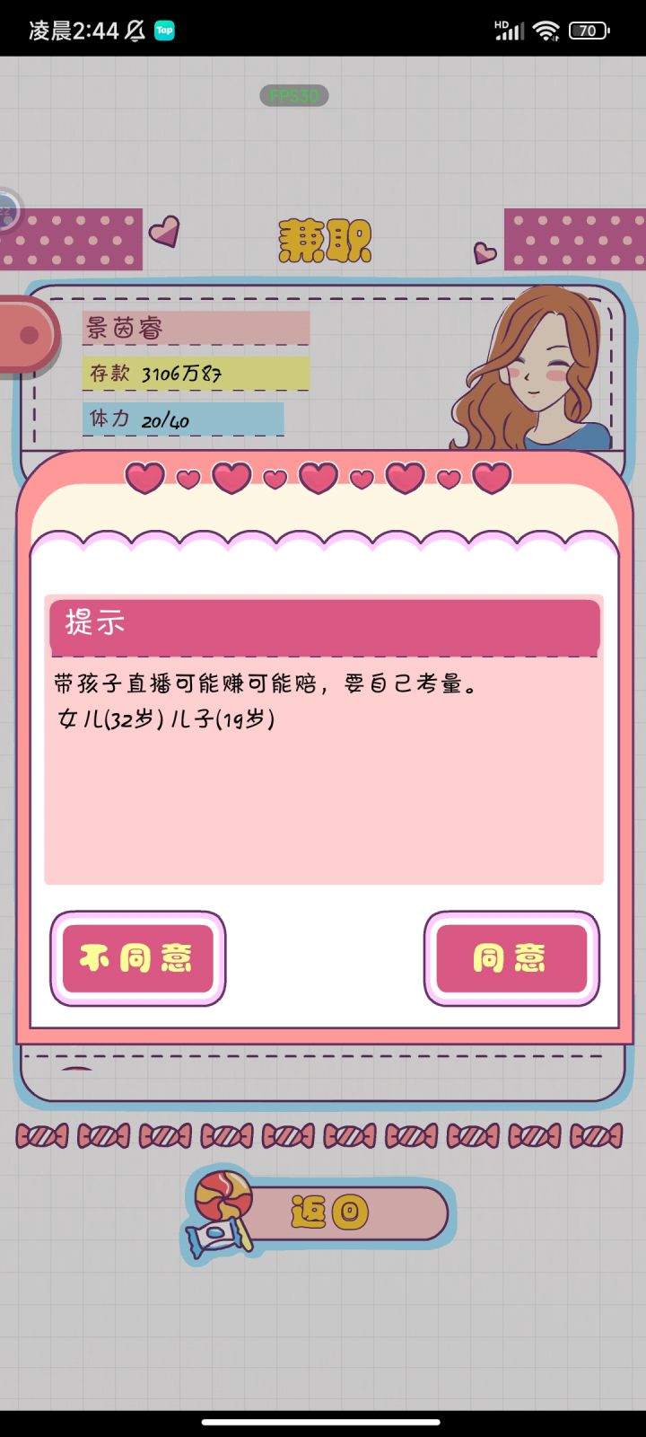 真服了,BUG一堆,三观感觉也不太好,怎么什么都是我在花钱?谈恋爱,结婚还要我倒贴,家长也是一样,情感全是负面的,什么狗屎,雌竞,抑郁,孩子比较,一扣扣10点,还有那个工资,加班有个屁用,不如躺平混日子,干脆删除那个功能得了,收益与利益完全不成正比,根本不了解工资是怎么算的,时不时倒扣,有意思吗?垃圾东西,真服了,浪费时间,一直想要女主获得一个好人生,结果一开始的数据其实一点用没有,不如搞直播,一