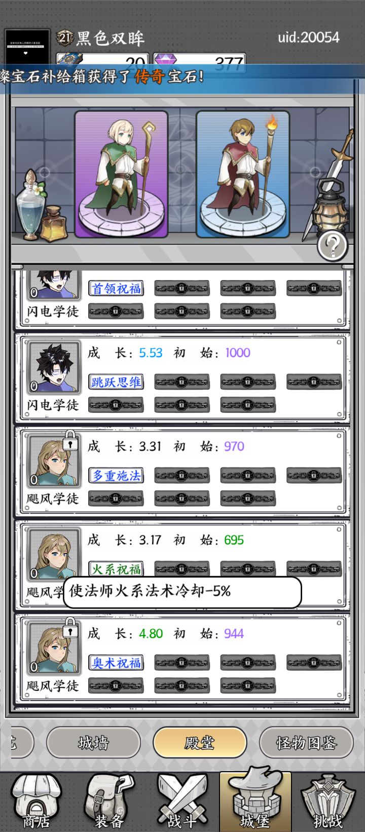 不过氪金玩着真的爽 同品质学徒继承概率出新天赋槽 被继承学徒返还所有强化材料,经验和传承之书 建议优先看学徒的技能路线,走控制路线 再考虑天赋
