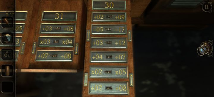 一开始还是一样,回到放三角的桌子去出现一个平台,得到光学装置来到这个门前放上光学装置转动用镜子使光偏转打开门进去。还是老样子,先修发电机拉开关这次示波器是滑动下面的开关,与上面的保持一致,一起滑动,直到波重合。进入房间在正方的桌子上拿到皮匣打开皮匣,得到木柴再在桌子中心的类似于金字塔的正面的下方,按下按钮得到打火石左侧,滑动开关出现一个解密红对红,蓝对蓝。解完得到金属铸