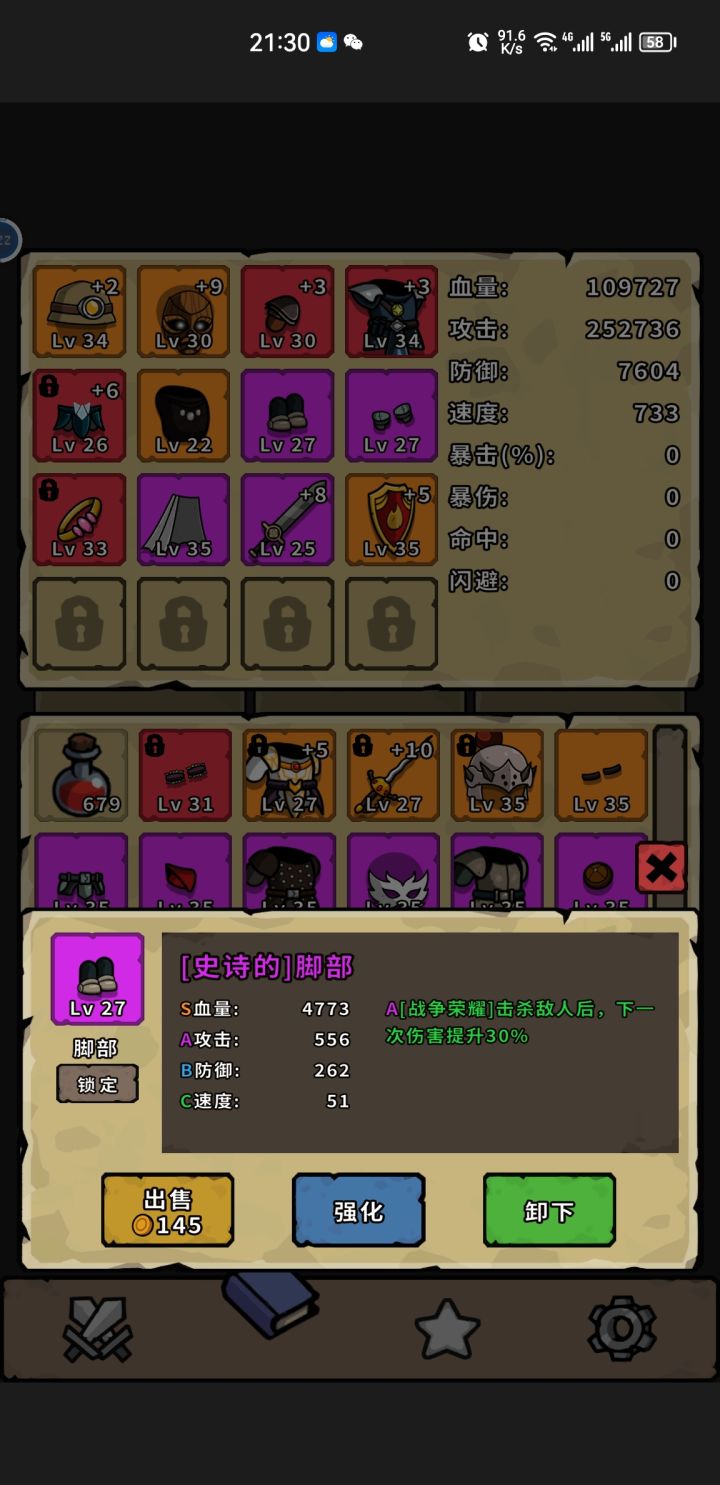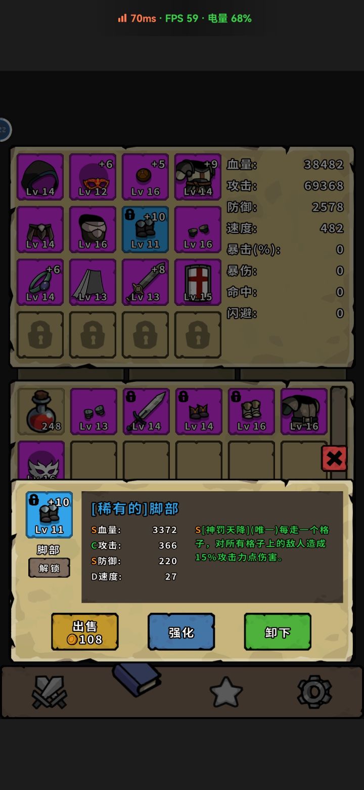 神罚一个,荣耀有多少拿多少,然后多拿药,直接冲层,打不过动了就在一排上下或者左右打。用神罚把其他怪打残血。然后用神罚把残血全打死然后攻击就叠很高了,然后就一直捡物品攻击无限叠加,新出的怪就会被神罚秒杀