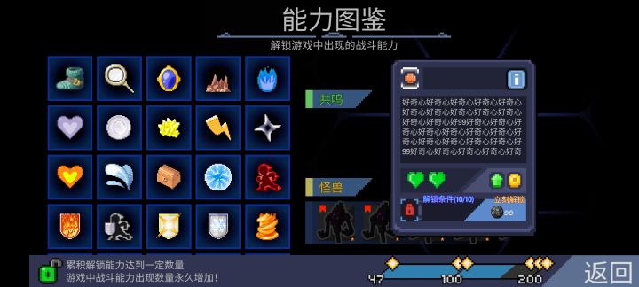 想知道超文明强化是怎么解锁的。能不能增加一个可以在进场前关闭己解锁能力增强难度的设定。可以增加一个成就系统吗。顺便炫耀一下打到过的最高攻击伤害。还有零元购的体验很爽建议没试过的多打几局5个商店券或者4个加一个残血降价的那个石心