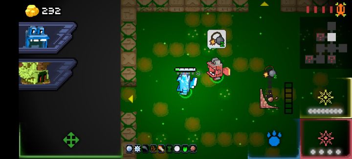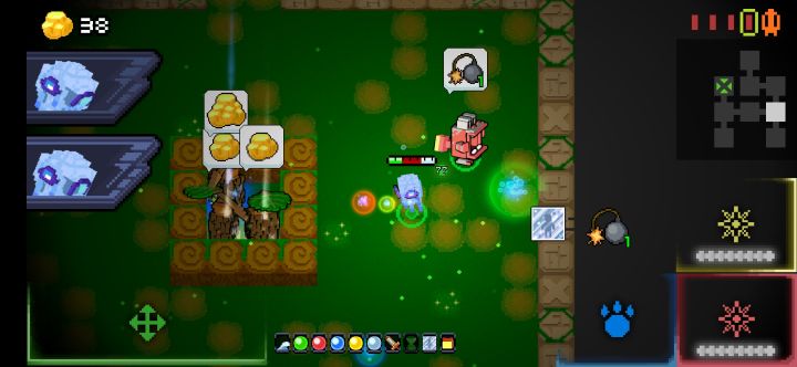 BUG提供1.炸弹位置更换到下面状态栏位置会更好,每次捡东西的时候,或者是交互的时候,就不会不小心按到炸弹。2.正确应该是随机一个商品免费,但是文本显示的是商人。