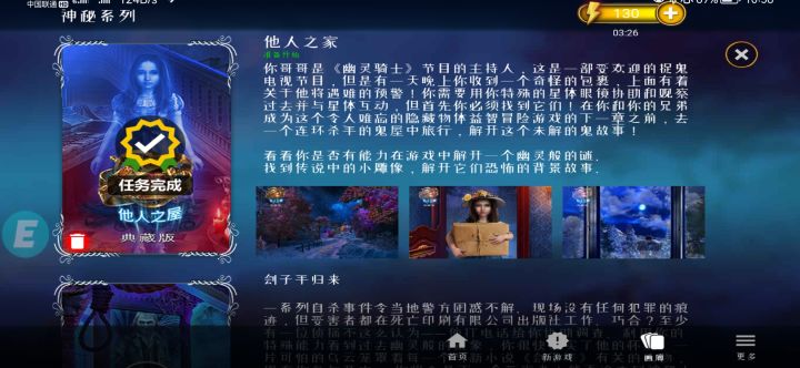 《神秘故事:他人之屋》通过打卡,有这坑爹体力系统就算了,这个系统还有大bug,有时过了一段时间的不恢复,看论坛有人反应你们也没有修,一直忍是为了把这个打一半的游戏打完,现在打完了,卸载了,希望下次再下载的时候能修好