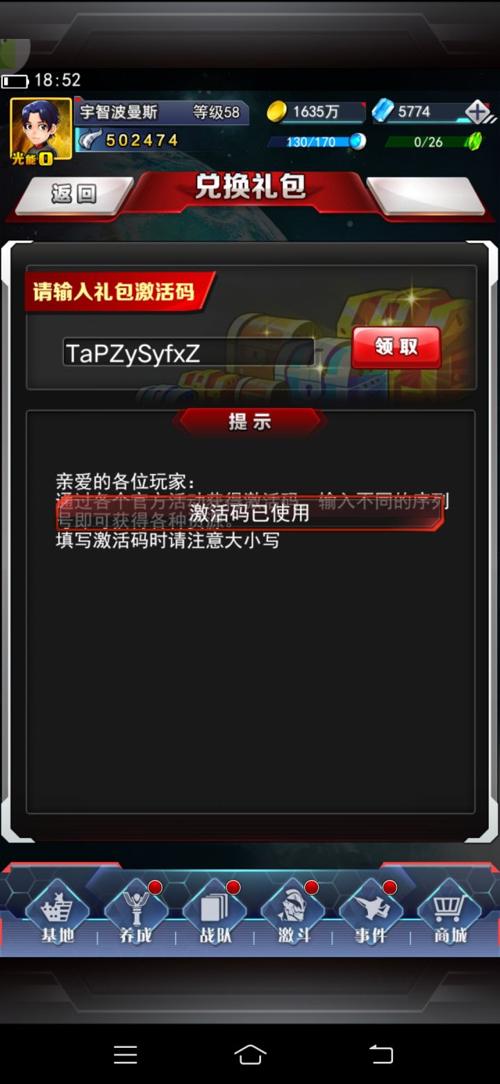 更兑换码根本用不了。今天刚领的,用不了