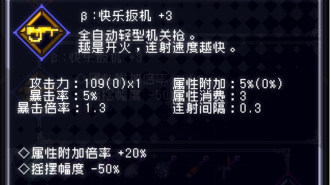 武器选巴掌枪,射速高攻击力高,清黑球和打伤害都有很好的表现。 核心饰品: 神秘储蓄罐:射击时属性表不再变动,方便站撸到底。 青铜、白银、黄金子弹:提高连射的基础攻击、暴击率、暴击倍率,用于提高伤害(可以注意下方的饰品栏,在命中黑球时仍然会叠加层数) 其他我就带了一个护盾和一些加基础攻击的饰品,用来保命和增伤。还剩一些点数,就给咪洛装了子弹比较多的加特林,加一个下一次高速,清球速度稍微快一点点。 视