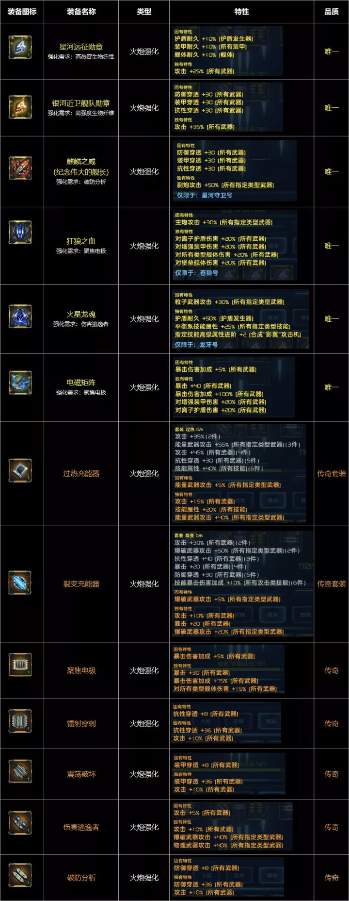 装备图鉴:模块篇1. “特殊类”模块 2. “火炮强化类”模块 3. “毁灭技能强化类”模块 4. “支援技能强化类”模块5. “护盾强化类”模块6. “装甲强化类”模块7. “舰体强化类”模块