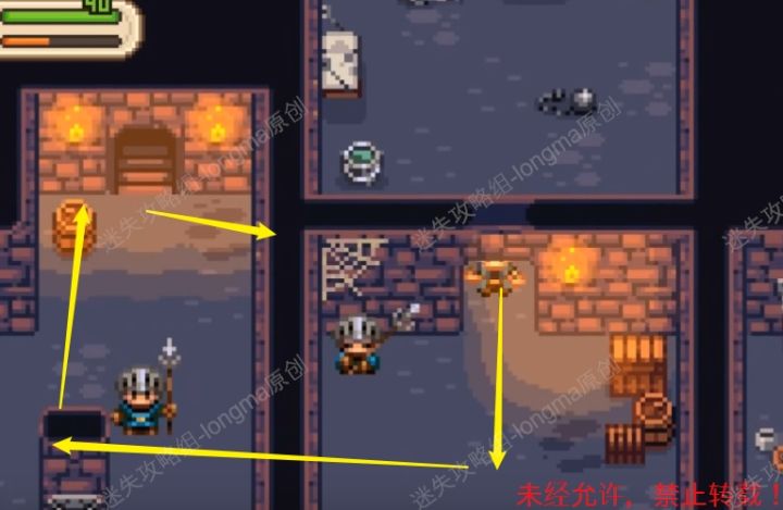 全流程+收集+BOSS图文/视频↓↓攻略作者:迷失攻略组-longma未经许可,禁止转载,侵权必究!(古代=像素画质,近代=2D画质,现代=3D画质)地牢时间:古代35.从牢房中出去,向下直走,走到尽头后向左转,然后向上走到最上面的过道(可以在阴影处躲避士兵,不要距离睡着的士兵太近),从过道进入下方第1个房间中找到【星星宝箱】,得到星星后继续回到过道处,向右走出去。35 35.136