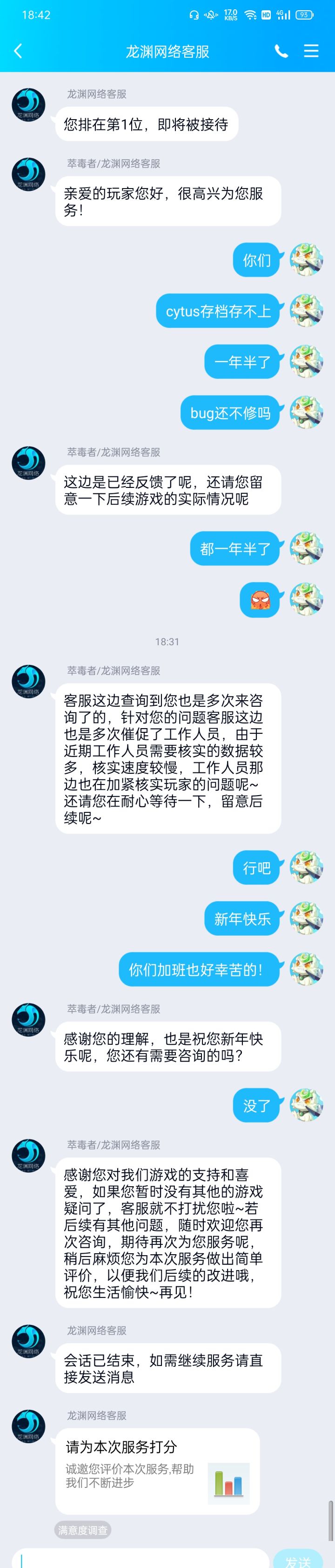 【存档问题进】逛反馈区发现有存档问题的朋友还挺多的,建议大家都去QQ800093212找客服反馈,人越多才越有可能修。😒我这是反馈三四次了,仿佛都被客服记住了😂