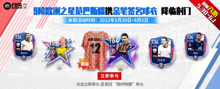 FIFA足球世界好礼永不停歇,本期射门全新换装,同时也更新传奇和卡王奖池、兑换商店奖励,高阶球员登陆射门,更有10亿转会费等你领!本期活动时间:2022年5月30日~6月5日5月30日~6月1日,限时六折!活动地址:前往游戏内“限时特惠”按钮进入或 >点击立即参与<活动玩法介绍:1. 传奇奖池可使用游戏币进行射门,可选择20个/一次和96个/五次;传奇奖池里有海量经验、金币、突破材料、