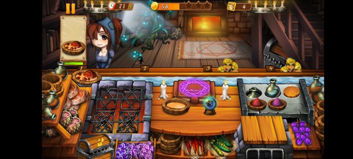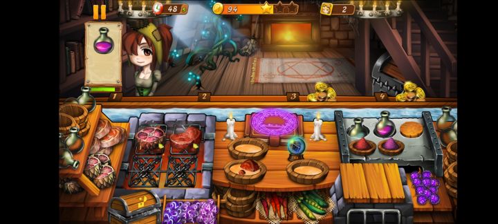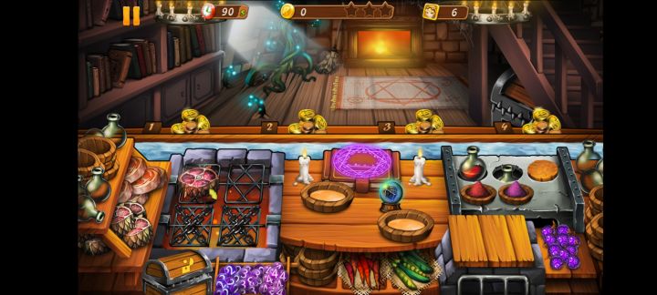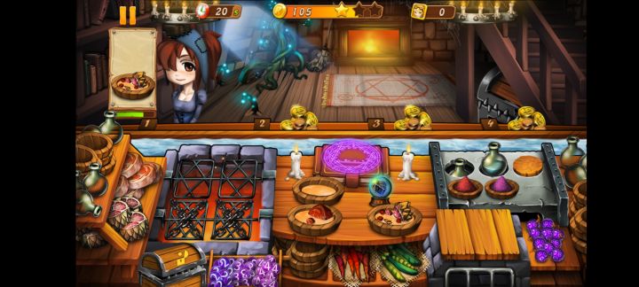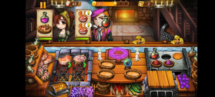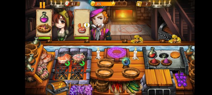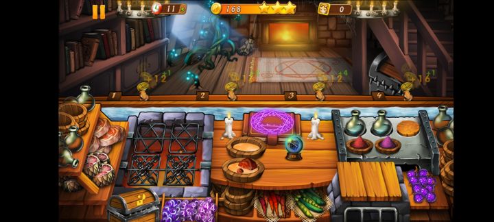 最近在玩最后一个地图了,突然发现了惊喜,卷轴可以总在客人的身上,火卷轴没啥用,会降低客人耐心。冰卷轴可以将客人冰住,客人的耐心在被冰住的时间里不会有变化,但是这期间没办法把食物给他。另外一个像电击的卷轴,我不知道怎么称呼它。它的buff触发好像是有几率的。感觉好坏都是50%,用在客人身上可能会增加耐心值,但也有可能降低,总的来说冰卷轴是最保险的。后来我又试了其他地图,卷轴都可以用。但大部分地图只