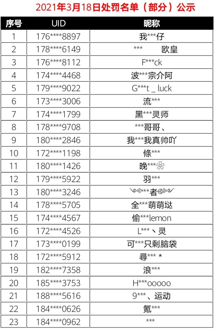 3月18日非法游戏行为处罚名单公示