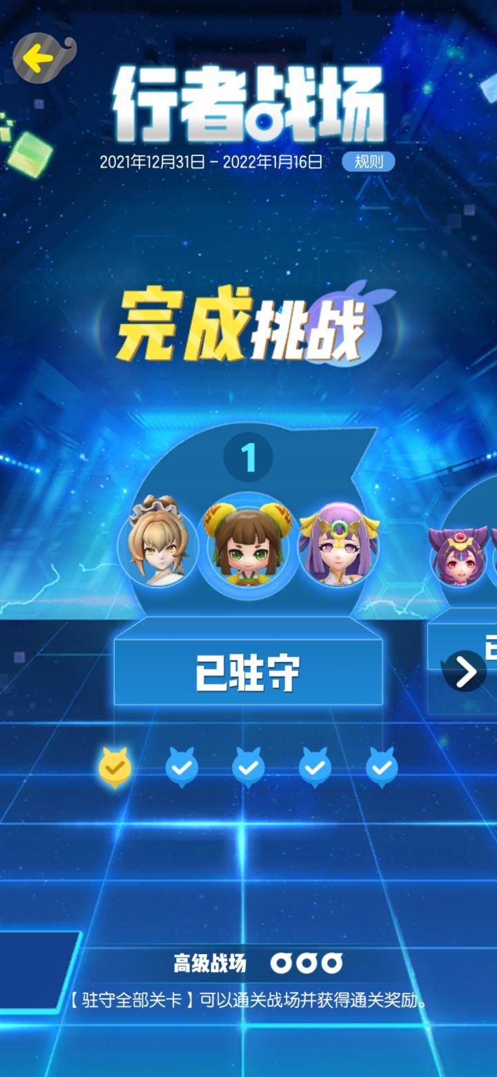 2022/1/26仙系高级战场挑战任务:[高级战场第一关]携带1只鬼属性妖灵。人生赢家+小寿星+鬼属性妖 蓄能。[高级战场第二关]不使用御灵师技能。厨神熊/真火炉+铁扇公主+铁扇公主。[高级战场第三关]更换妖灵次数少于7次画灵+真火玄龟+书中仙 狂暴。[高级战场第四关]没有妖灵阵亡。年兽+阿房+娇娜 蓄能。[高级战场第五关]150秒内通关。蟹武将+玄冥+书中仙 蓄能。个人娱乐