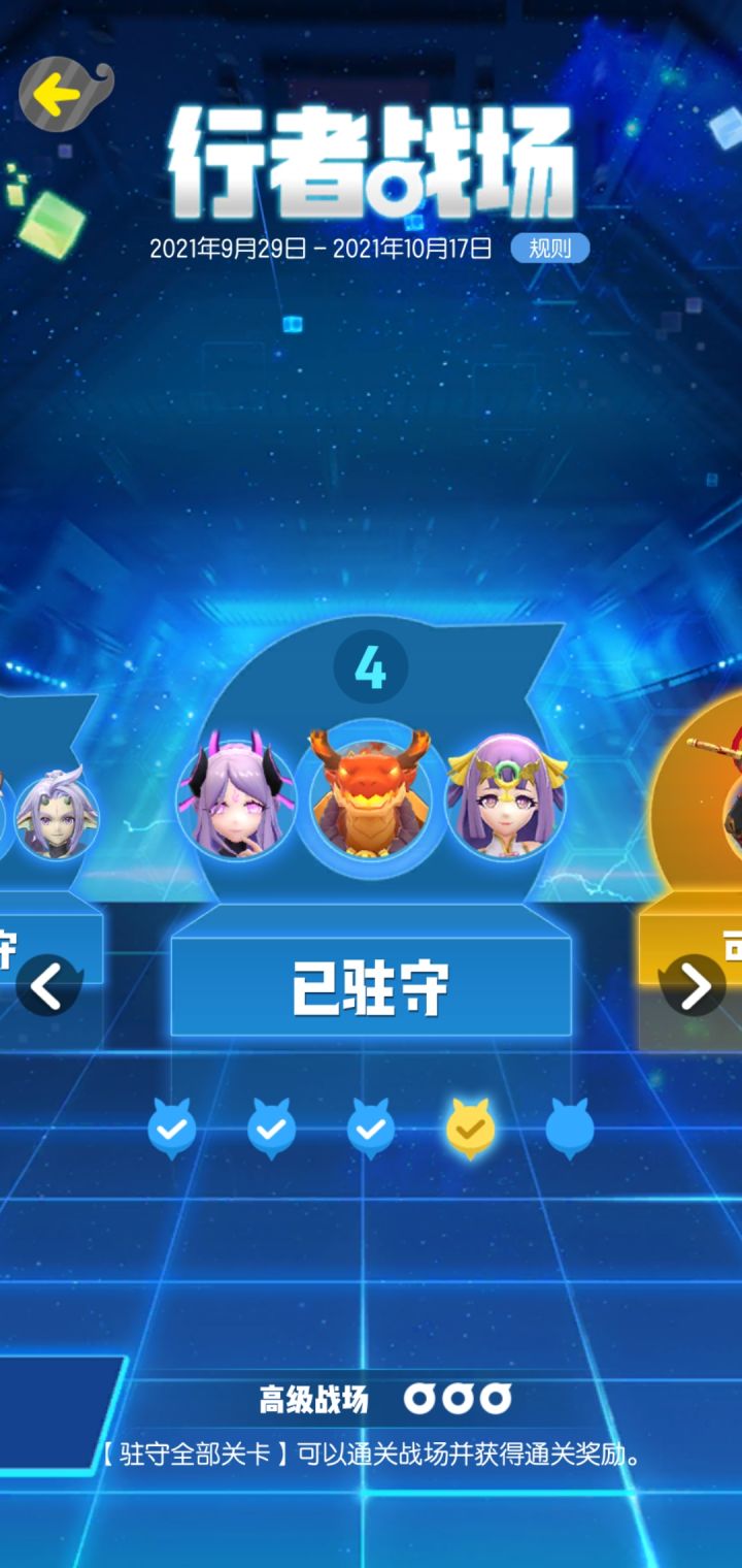 高级战场【第一关】①奎木狼+书中仙+娇娜 蓄能。————————高级战场【第二关】①牵线傀儡+白虎+娇娜 蓄能。②白无常+黑无常+娇娜 蓄能。③电母+白虎+书中仙 蓄能。注:也可以电母+空输出+随便煞。————————高级战场【第三关】①画灵+真火玄龟+咸鱼 狂暴。②电母+青翼女王+咸鱼 狂暴。————————高级战场【第四关】①轸水蚓+轸水蚓+不眠生 回血。注:轸水