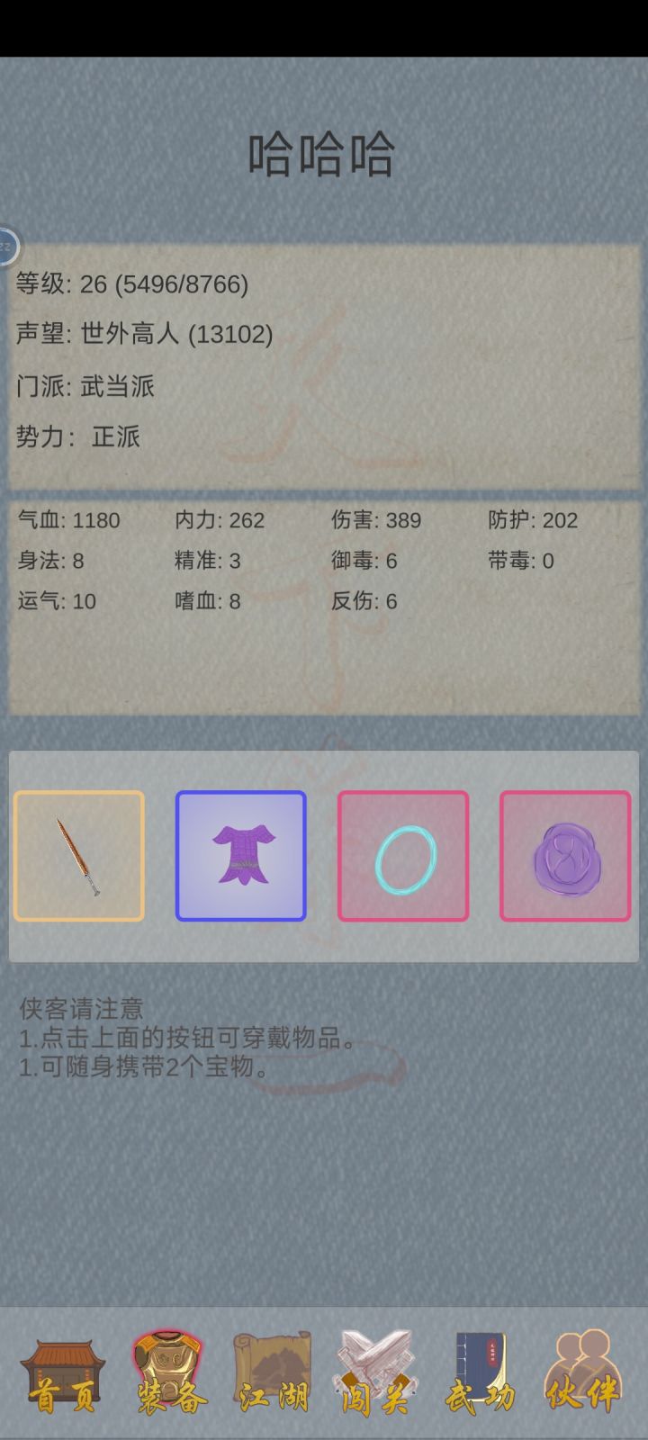 伙伴可以带装备吗