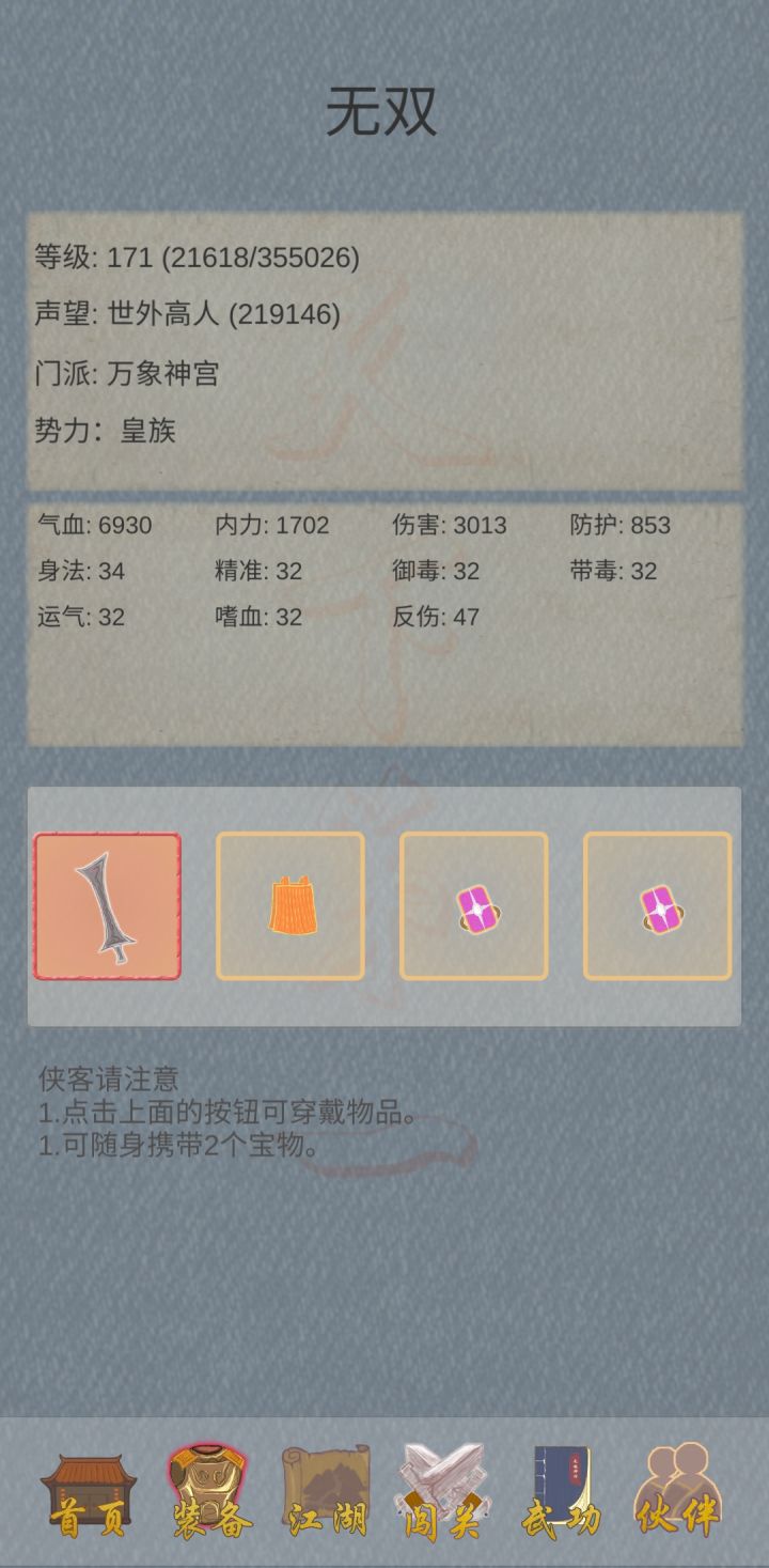 老婆镇楼打完后的装备虽然去搞了多情剑法,但是我打怪还是要用无双决过