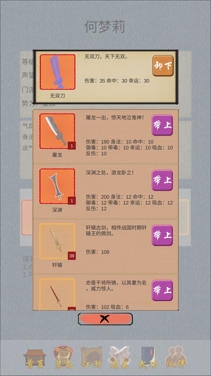 思路概括:使用无双决打输出,武媚月控制,前排人肉护盾。小白奶一口主角就不会死(死了也无所谓)。注意!:对面有控制技能时多刷几遍(技能几率触发),比如万象天宫。功法:获得途径在论坛里查吧,不赘述了。重要人物:找她也自己查吧#(滑稽)老家伙们可以过,只求一败过不了。