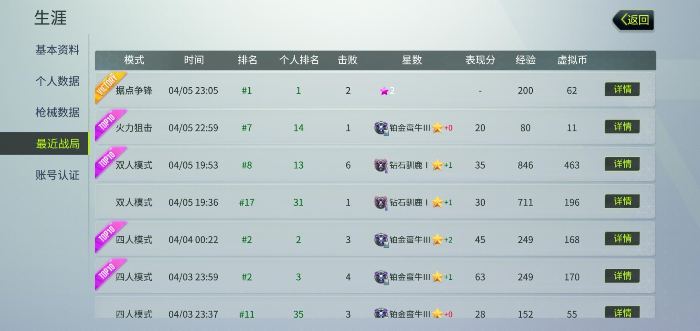 我贴下战绩好吧,这怎么你们随便举报就能制裁 ,你们脑子呢,我这像开挂?真正开挂的你们不封在这搞我?