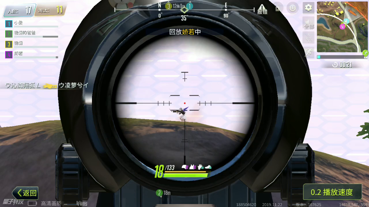 我好几次被这个人杀了,每次都带一个人,开挂的是这个,这是死亡回放,我满血两枪锁头死翘翘,举报无用
