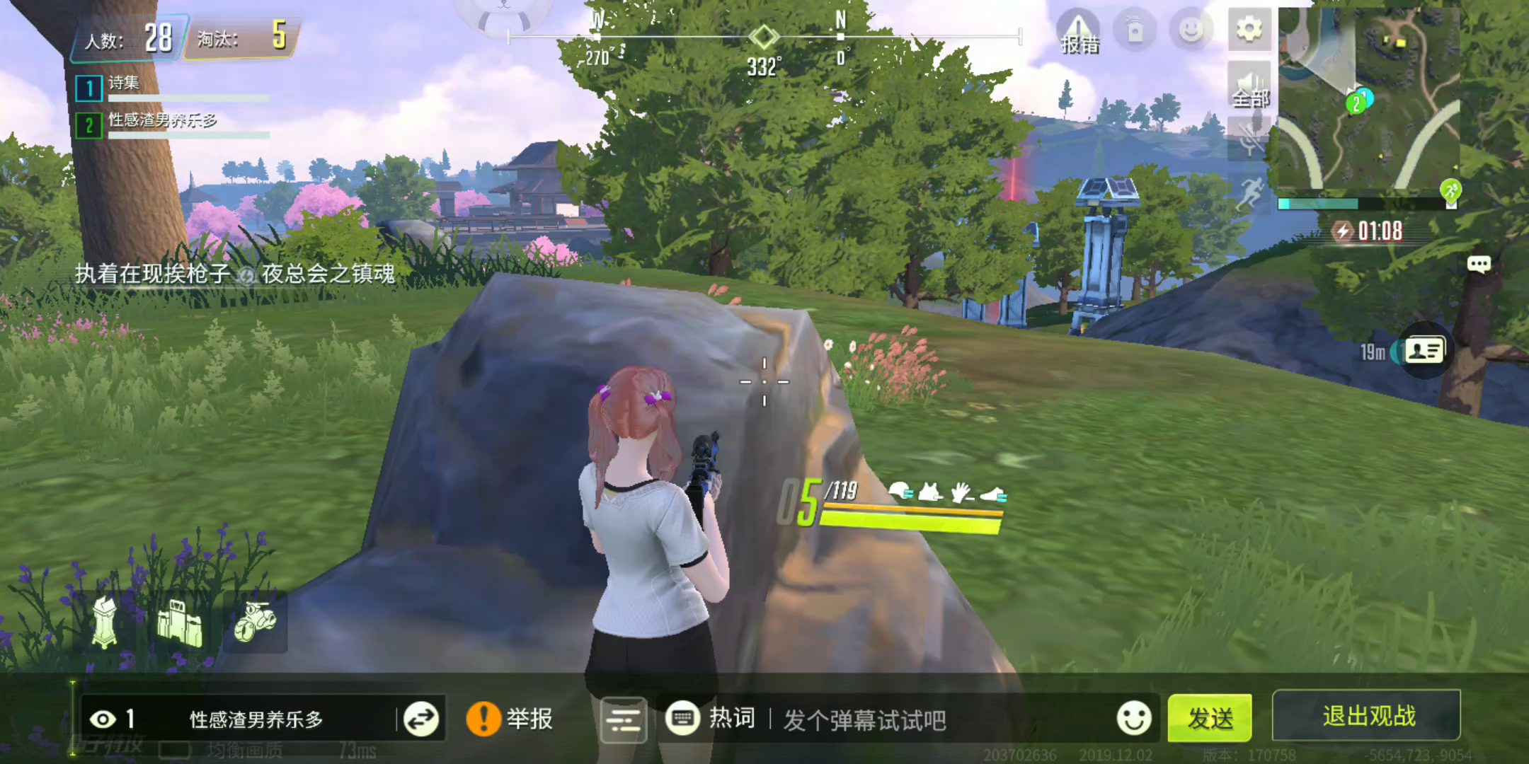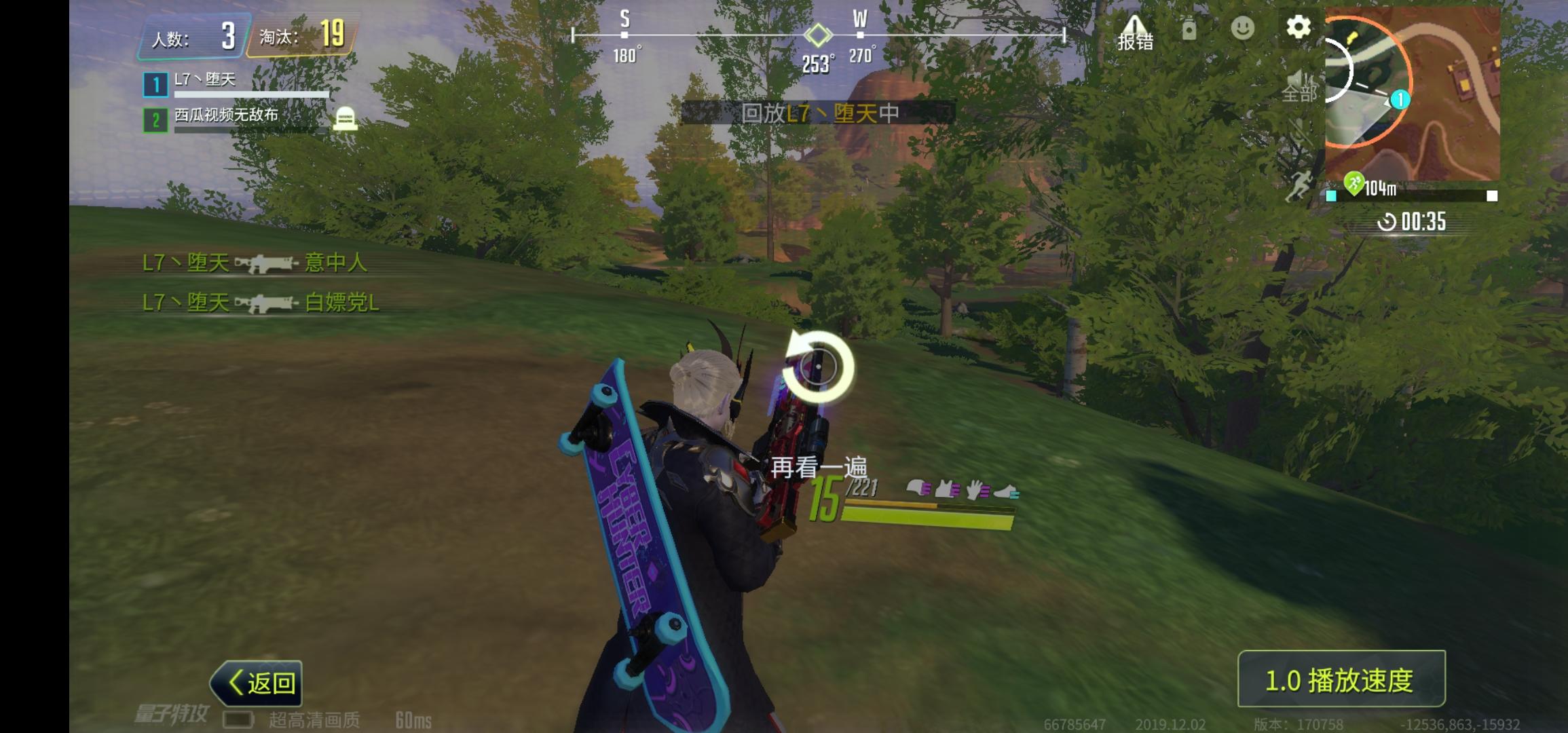 这人我遇到不下10次了 每次都是直接秒我,他没有带标记,而且不管你在哪里他都知道,这就算了,不管你飞天还是建塔都是瞬间秒你,主要每局都是杀20人起步的。我观战他,他和别人打架,别人从来没有坚持过10秒 量子君你看看吧,如果真是挂请封一下。这人一般是晚上11点开始打 都是凌晨打的