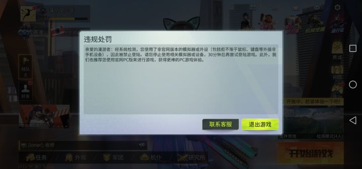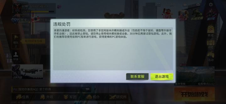 如图,今天第一局游戏,还没落地给我弹出来了,我手机是荣耀20,从CS2入坑到现在,从来没用过模拟器和外设,我连王牌雄狮都还没上过。平时上班抽空玩一下,突然来个这个,游戏体验极差。望官方能尽快解决这个问题,给我们这些老玩家一个安逸的游戏环境。也愿这个游戏能越做越好!