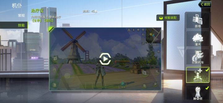 新手技能和武器推荐。从公测开始玩这游戏,给刚开始玩还处在懵逼的玩家推荐技能及武器搭配。首先是技能:首推治疗仪,推荐指数五星,属于必带,效果是为小范围内自己及队友回血,技能释放不影响射击,释放后不影响释放其他技能,单排多排必备,在没回血包时能回血,跟别人刚枪时放个在地上边回血边刚胜率更高,45价格性价比无敌。第二个推荐瞭望塔,推荐指数五星,也是必带,效果在原地召唤瞭望塔并让角色强制位移到塔上,是一