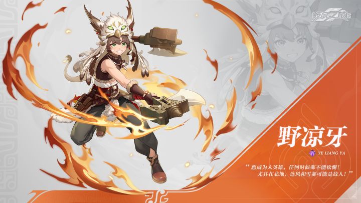 ※野凉牙人物介绍※----------------------▍数据库导入中……已完成_▍角色阵营:焚惑_「想成为大英雄,任何时候都不能松懈!尤其在北地,连风和雪都可能是敌人!」野凉牙从小在猎村长大,习惯恶劣的环境的他,有着一身追踪痕迹、布置陷阱的本领。他将反抗诸夏的古摩度视作英雄,直到自己也被他所救的那天,他决定跟在将军身边,并渴望着,能够真正和他肩并肩的一天。但光有干劲完全不够,