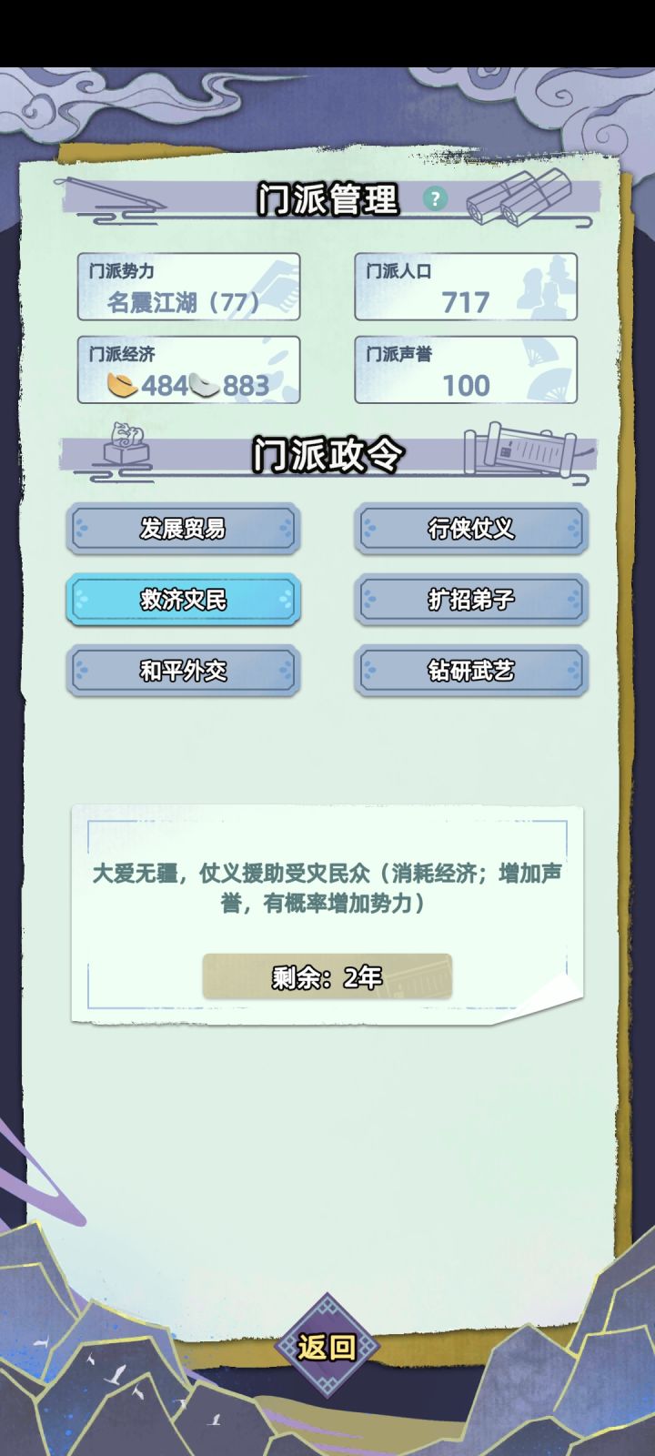 继承的时候修为已经比一周目厉害了,但是后代好像除了长子都不生,只能领养两个