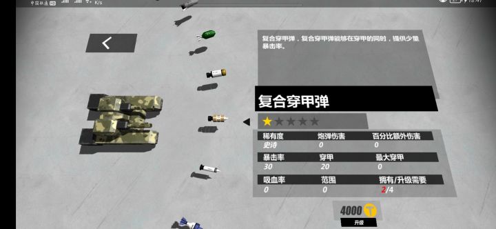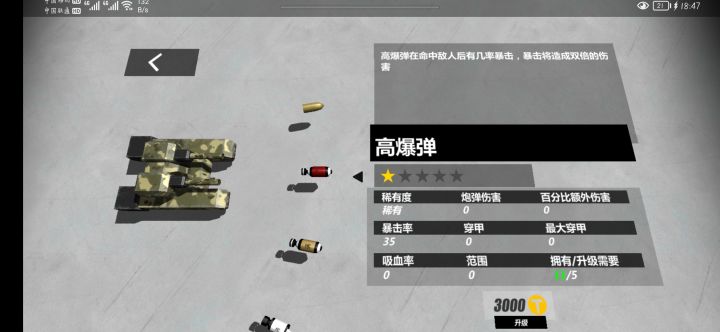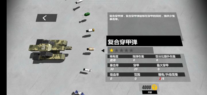 建议:炮弹界面能不能可以像坦克属性界面一样加个升级预览呢?这炮弹升级就和开盲盒一样,真的让人难受啊!反馈:二级炮弹变一级炮弹的BUG什么时候能修复呢?