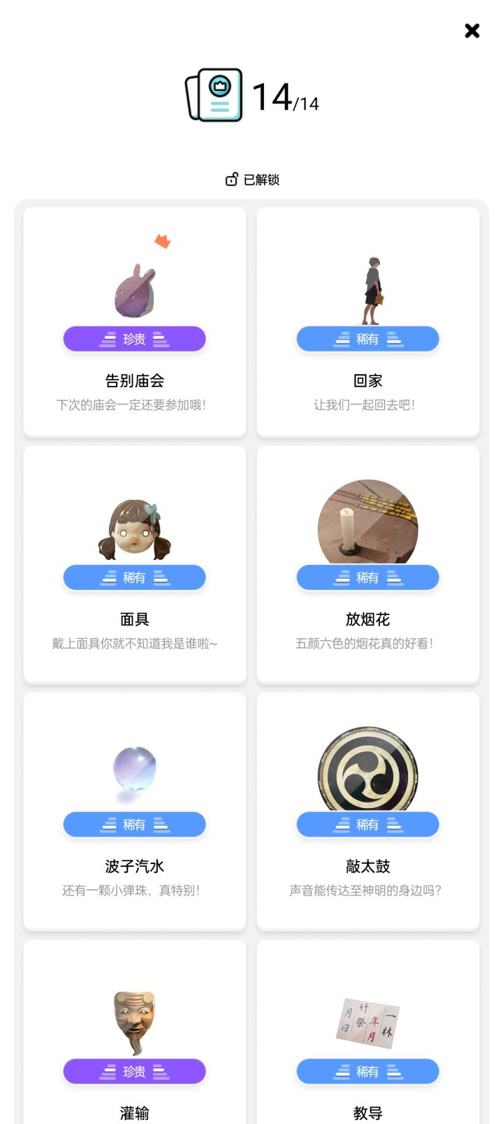 我是在玩了《失物终点站2》后才来玩这款游戏的,主要是被《失物终点站2》圈粉了,而且这两款游戏是同一家公司制作的,就果断入坑解谜去了。但是玩到后面发现,成就只能解锁12个,广告也看了,游戏结局了,TAP里面找了半天攻略也没有人说个所以然,就在网络上去找攻略才发现有隐藏线索。如果你要解锁全部成就的话,这边强烈建议你看完这篇攻略,不然你还得二刷。🏮【第一章】隐藏线索:点击鸟居场景道路尽头处多次,会掉落