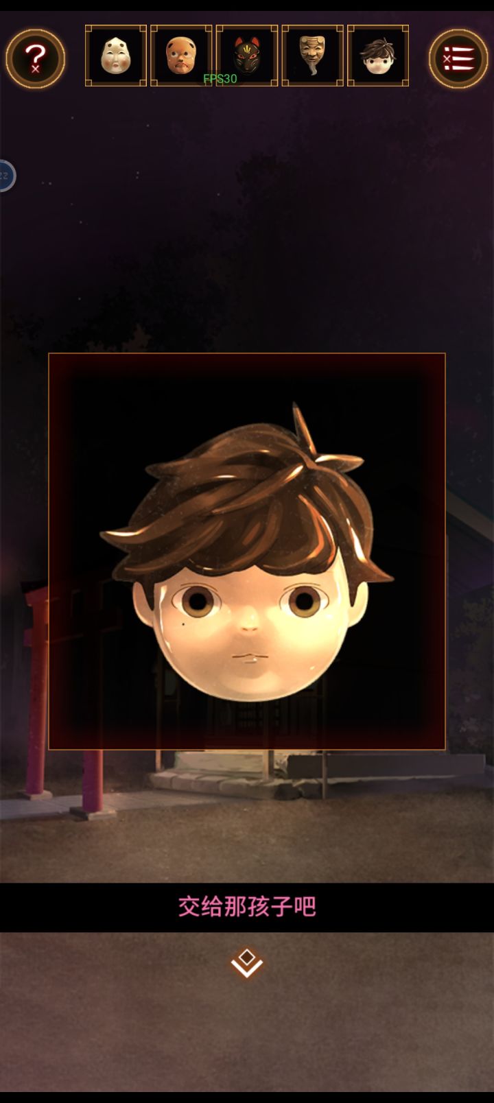 攻略作者:迷失攻略组-Neath未经许可,禁止转载,侵权必究!💡更多图文+视频攻略可搜公众号🔎迷失攻略组(也是第一时间放攻略的地方(^U^)ノ点击跳转: | | | | | 第五章27、向右移动和男孩对话,对话结束后切换场景,在桌子上拿走【电池】。27 27.128、向左移动,点击小亭子,观察面具和指示箭头,拿走下面的【发光手环】。2829、到桥边,点击左边的面具小摊,根据#攻略#游戏安利